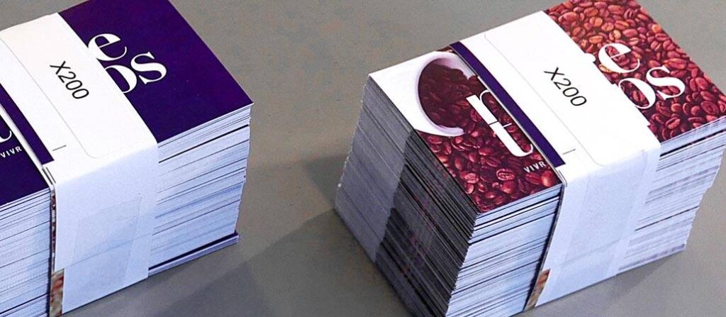 - 400g/m2 : Cartes de visite plus épaisses et rigides.