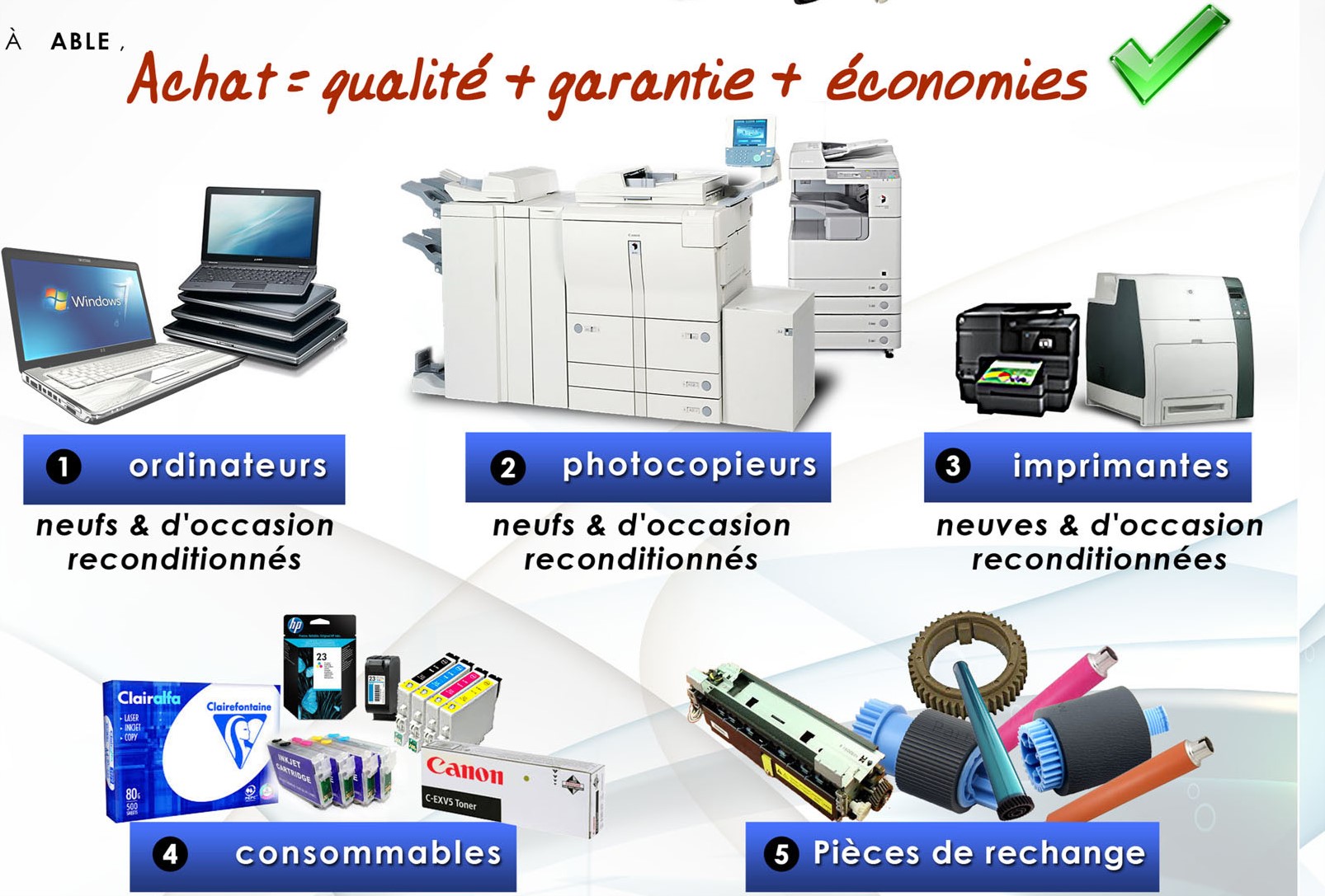 Dans le soucis d'être à la hauteur des attentes de nos clients, nous vendons du matériel de très bonne qualité auquel nous associons une garantie. A ABLE, Achat= Qualité + Garantie + Économies.